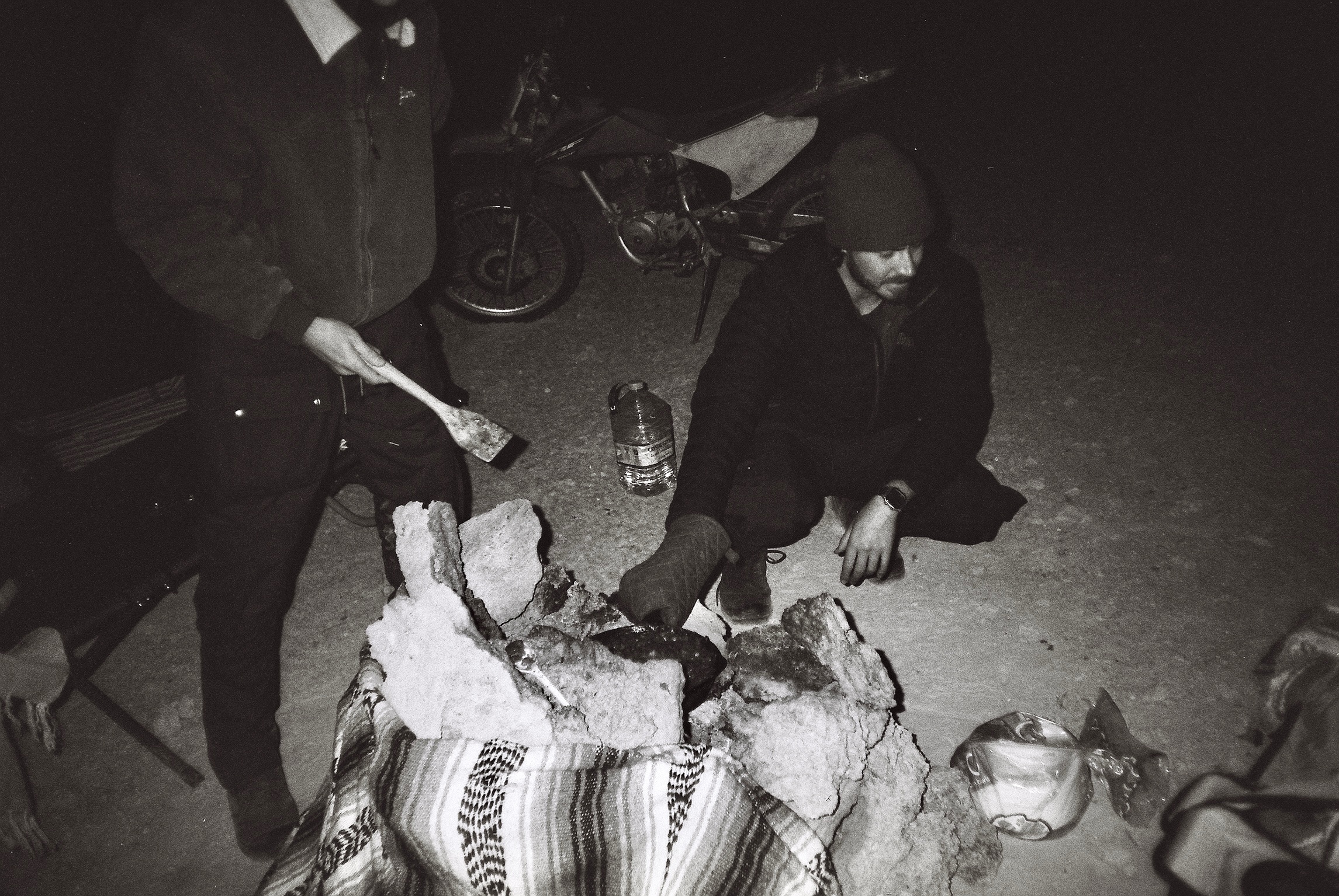 The drive in to Trona Pinnacles at sunset has to be one of the most freeing feelings – there's little to no road, and once you see the pillars stretching to the sky there's an infinite amount of ways to get to them. There's honestly no wrong way. We drove around for about 20 minutes scoping out the area, the different people camping, in hopes of finding a spot that blocked the intense wind that was rolling through. We had no luck there, but found a spot to watch the sun set and begin setting up camp. We dirt biked for a bit, set up tents, and then immediately [REDACTED]. I haven't [REDACTED]. [REDACTED].